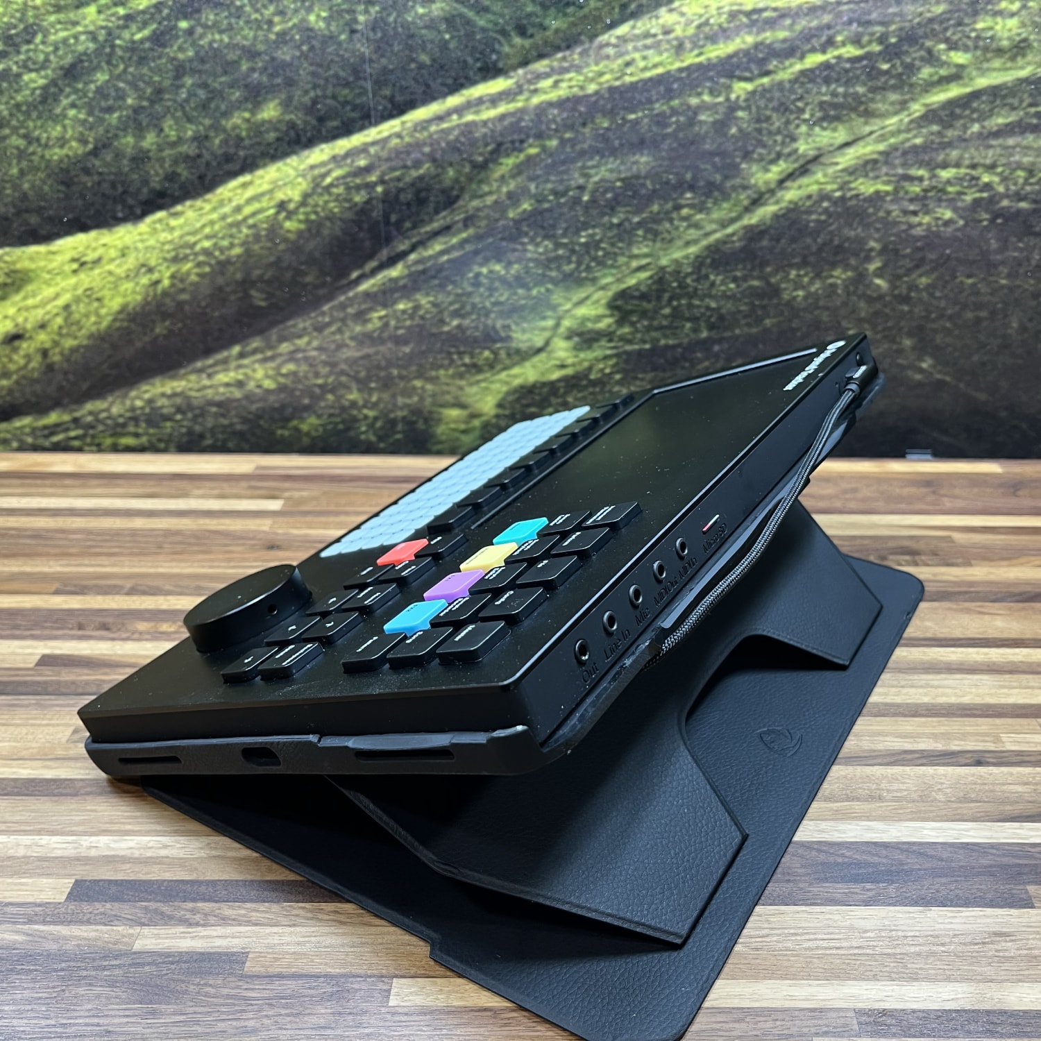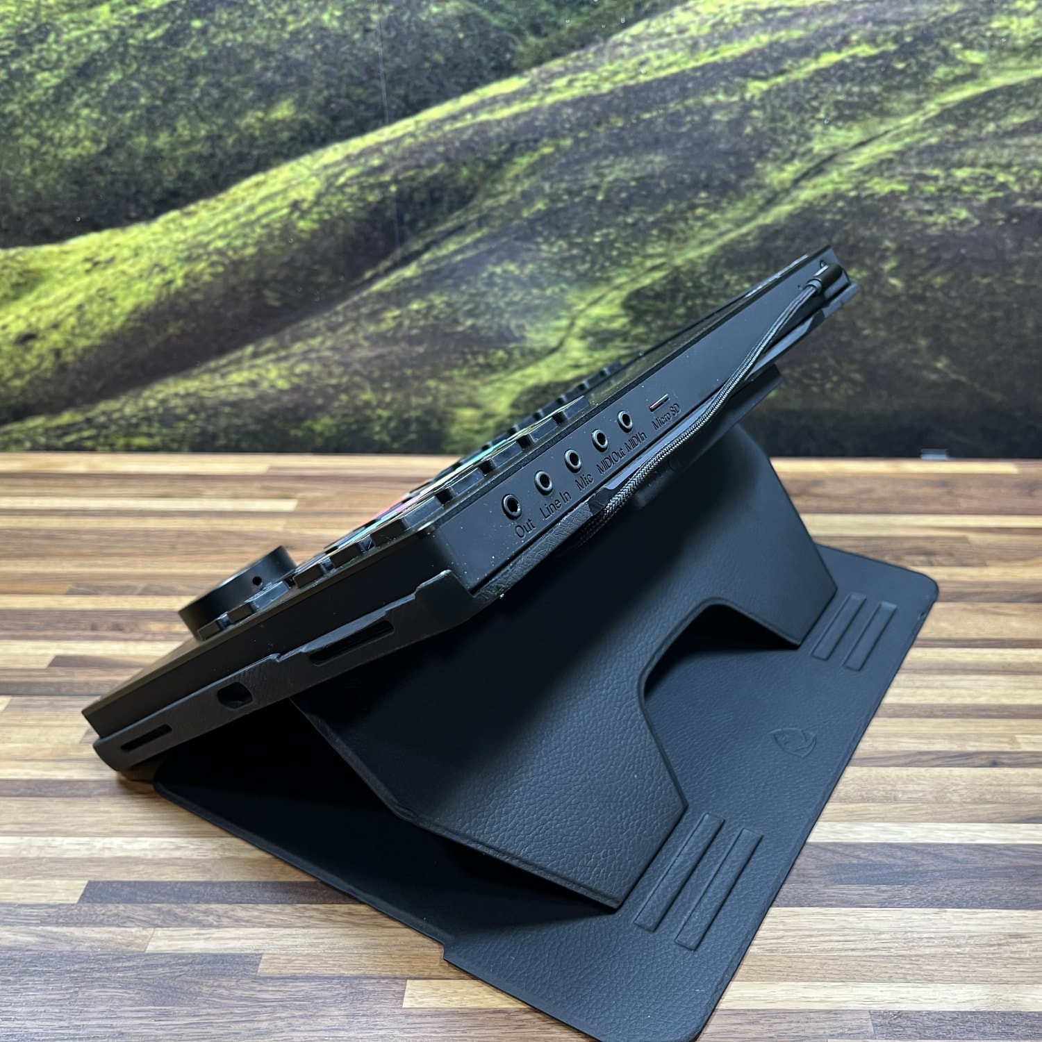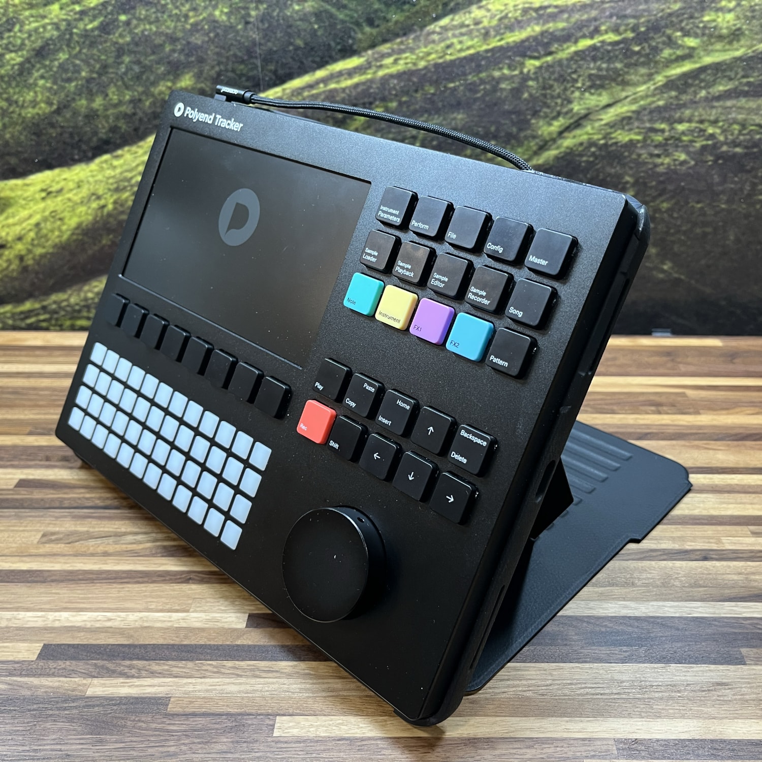 The first thing you need is to be able to comfortably prop up the Tracker so you’re not hunching over it for multi-hour sessions. This stand is the most sturdy and reliable available. It’s built well with aluminum and rubber, and it fills out the width of the Tracker really nicely at 9.5″ wide. The Space Gray color blends into the Tracker well. I have the latest version of the Polyend Tracker with the ‘soft-touch’ back texture, and the adhesive for this stand is sticking just fine on that texture – something I was a little concerned about initially. It will be even better on older Trackers. (Peel off the two back feet, first.)