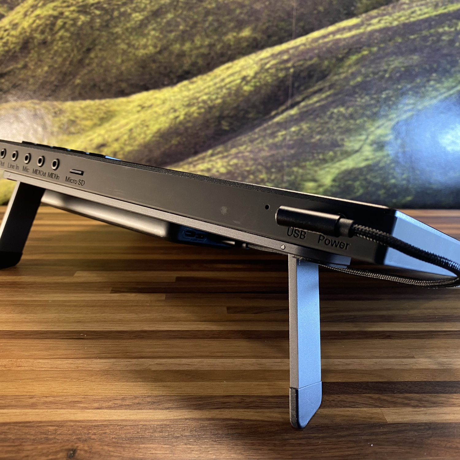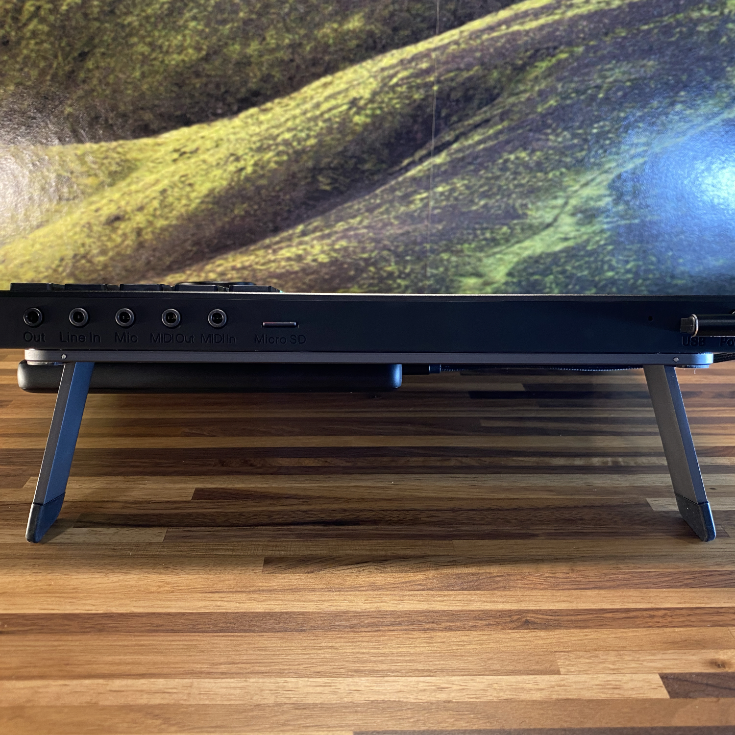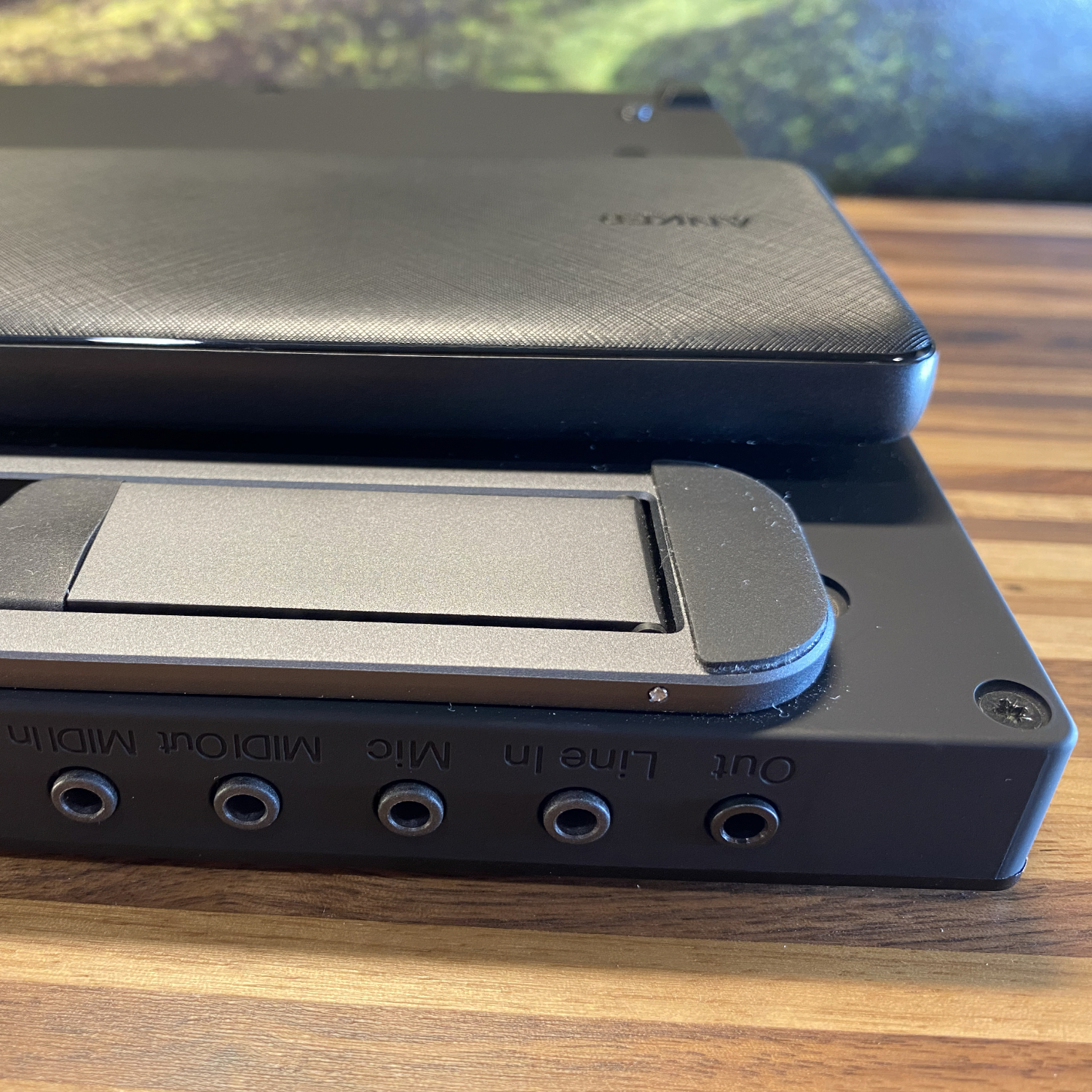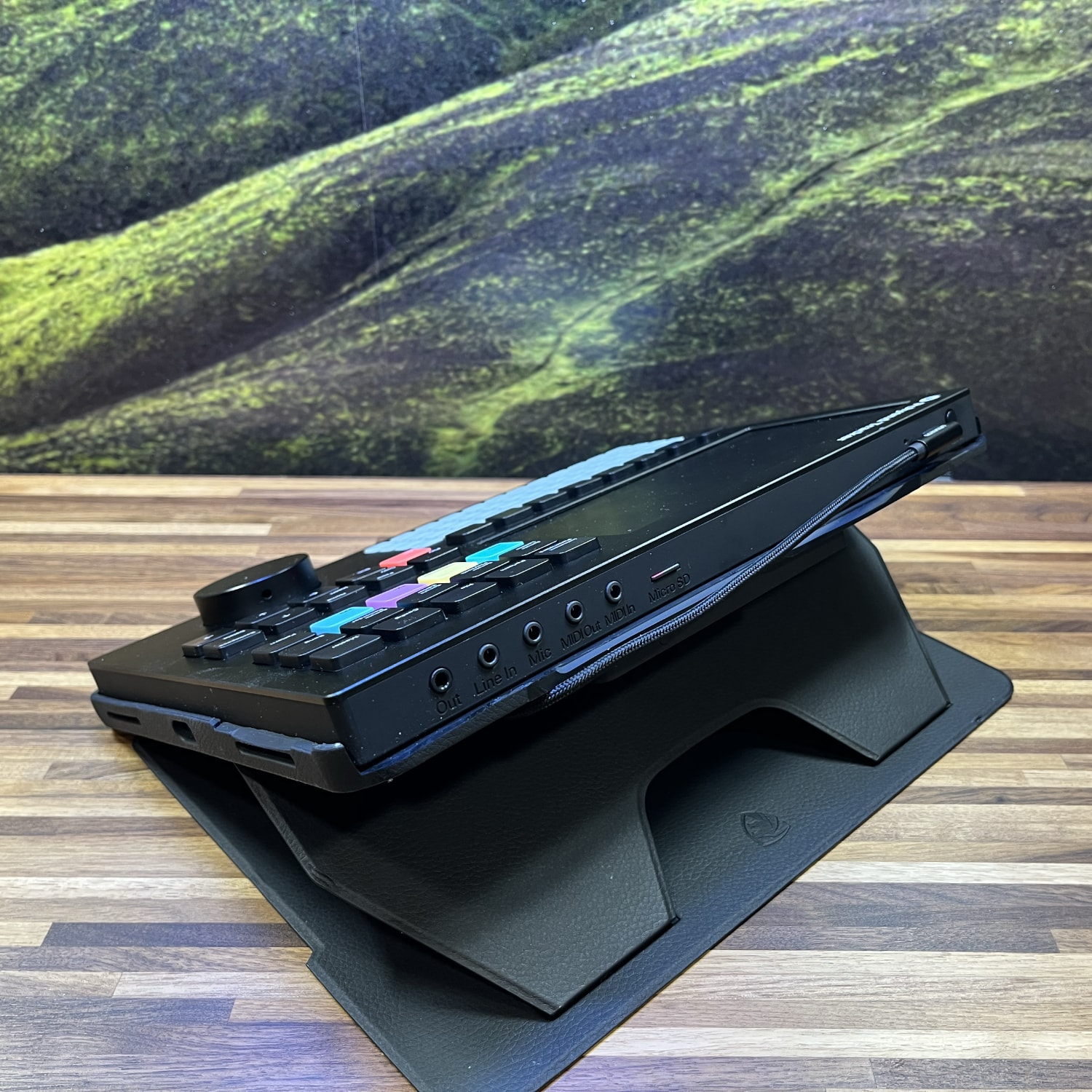 The first thing you need is to be able to comfortably prop up the Tracker so you’re not hunching over it for multi-hour sessions. This stand is the most sturdy and reliable available. It’s built well with aluminum and rubber, and it fills out the width of the Tracker really nicely at 9.5″ wide. The Space Gray color blends into the Tracker well. I have the latest version of the Polyend Tracker with the ‘soft-touch’ back texture, and the adhesive for this stand is sticking just fine on that texture – something I was a little concerned about initially. It will be even better on older Trackers. (Peel off the two back feet, first.)