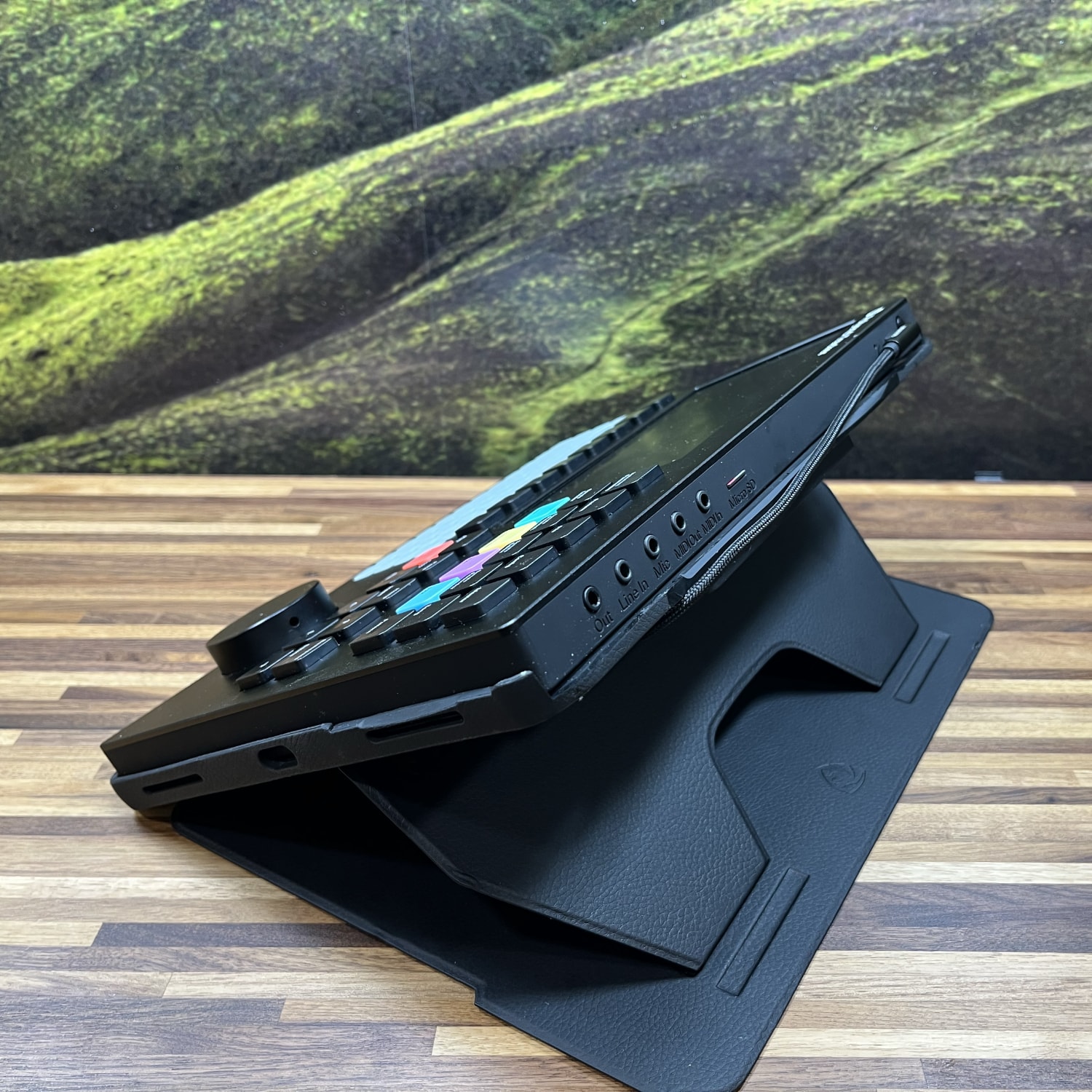 I tried this because it was pretty cheap. I wasn’t expecting much, but I use this thing all the time. It fits the Tracker perfectly, but it’s generic design also makes it great for the MPC One. It has a LOT of angles, and it’s totally sturdy. Since it folds flat and is lightweight, it’s nicely portable. For a budget angled stand, you kinda can’t go wrong here.