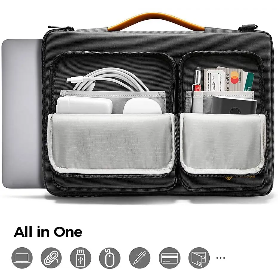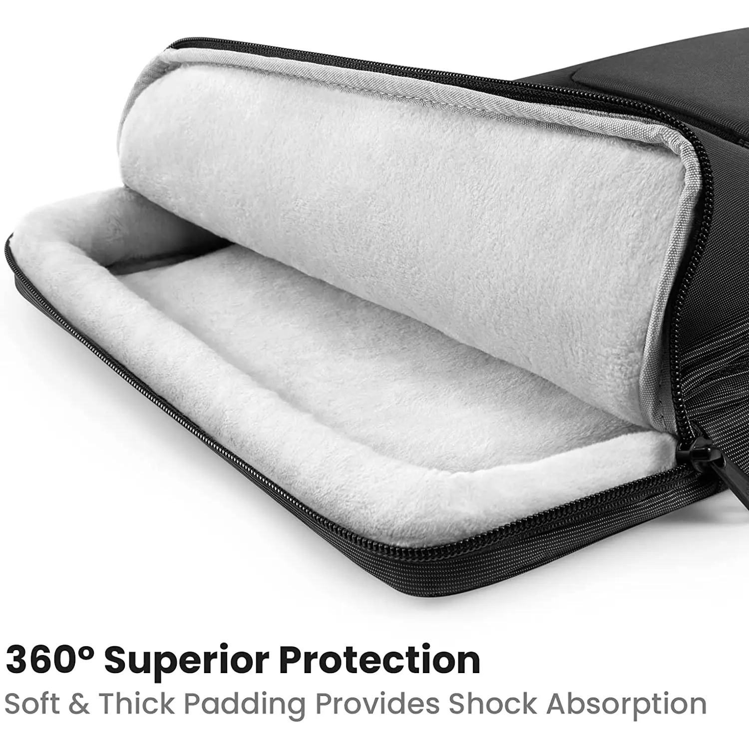 I tried several of these laptop-style sleeves. I wanted it to be easy to get in and out with these accessories installed. This one was the best fit and quality. It’s real neoprene shell is thick, protects the setup, and fits perfectly. Bonus: neoprene is waterproof, so this is great for rainy climates.
